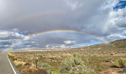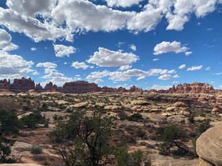 Needles was just as amazing. It's a beautiful place. We hiked the trail at the end of the Elephant Hill gravel road. Just to clarify, you can continue driving on Elephant Hill with a permit and a 4-wheel drive vehicle. We saw a truck climbing the side of the mountain—apparently on a road. Yikes! The trail we hiked was incredible, with each turn offering another breathtaking view. It helped that the day was picture-perfect with strikingly blue skies and fluffy clouds. To cap off our day, we saw a double rainbow on the way home.