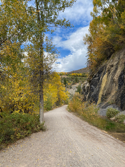 Named for the Rio Grande Railroad, the 42-mile trail goes from Glenwood Springs to Aspent. It follows the Roaring Fork River and Route 82 before it turns east and continues to parallel Route 82 to Aspen. We drove to Basalt and rode from there to Aspen - 42 miles round trip, 1,300 plus gain in elevation. Absolutely beautiful ride. There was always something interesting to look at - rivers, mountains, coyote, flock of turkeys. I say this a lot but it was one of my favorite rides ever!