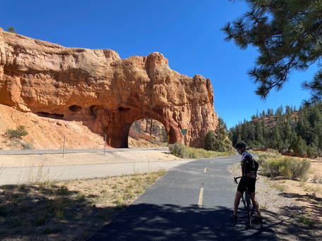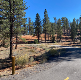 The trail is 13 miles one way and connects Bryce Canyon Park to Red Canyon, a part of the Dixie National Forest. It was very scenic the last four miles into Red Canyon. The trail was curvy, hilly and went in and out of the forest. The first part of the trail out of Bryce City was not terribly scenic and not in the best shape. There were many headache-inducing cracks in the pavement which I imagine wouldn't be so noticeable on either e-bikes or mountain bikes. Red Canyon was very pretty.