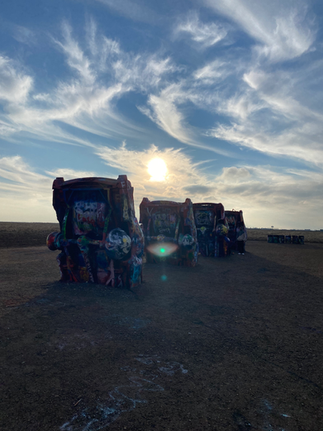 One of the reasons we paused for two nights was to go to Palo Duro State Park. I had been reading about it and was interested in the fact that in the panhandle of Texas exists this enormous canyon. It did not disappoint! Amarillo is so flat - flatter than the prairies of Illinois if that is possible. And then all of sudden you get to Palo Duro which is a huge canyon - the second largest in the country in fact. We hiked to the Lighthouse Rock - six miles roundtrip - and loved every minute of it! And bonus - on the way back we stopped at Cadillac Ranch.